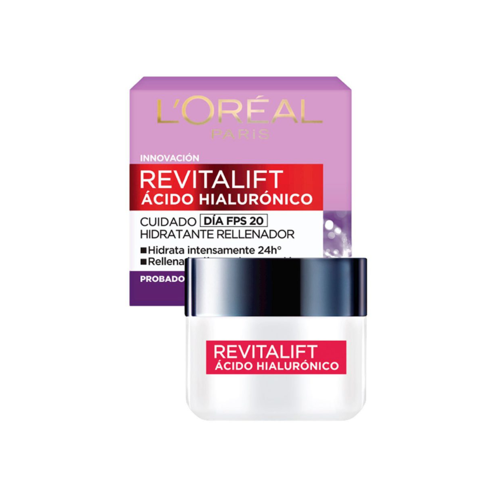 La Crema Revitalift de día, formulada con ácido hialurónico y protector solar Fps20, hidrata profundamente, hasta el punto de rellenar las líneas de expresión. La aplicación diaria de la misma resulta en una piel fresca y voluminosa, y una notable disminución de arrugas y líneas de expresión.